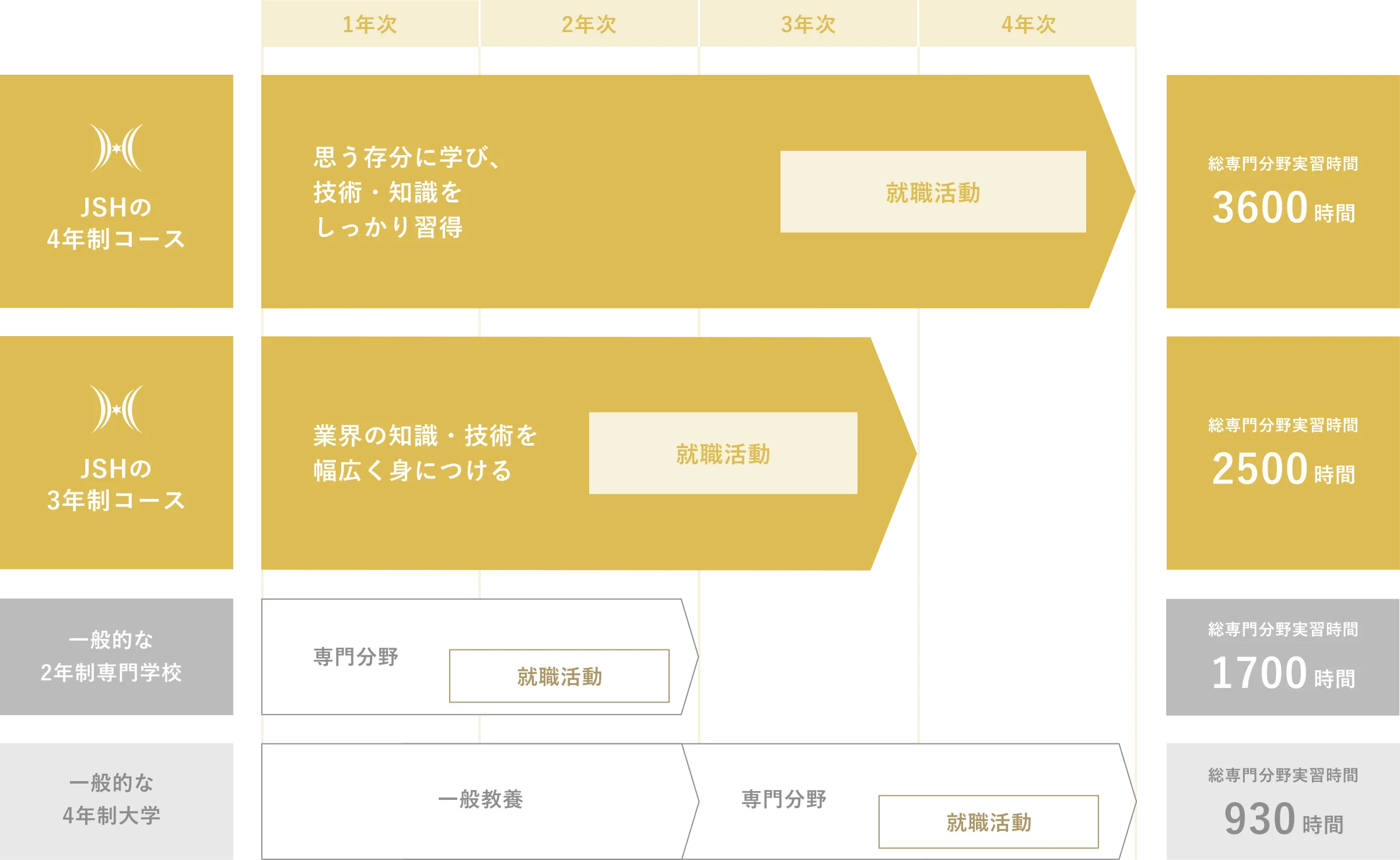なので、専門的なことに集中して学びたい人には4年制専門学校がおすすめです!