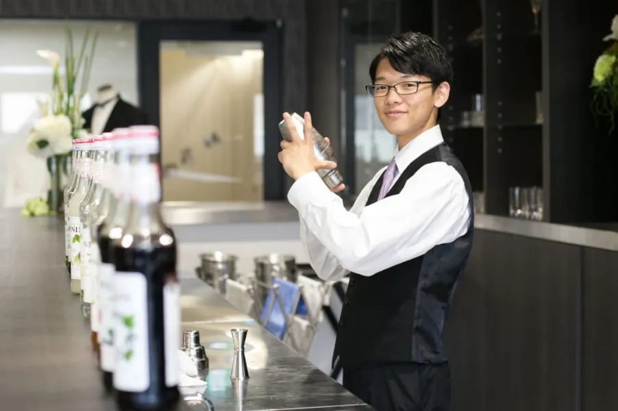 ホテルマンとしての知識だけではなく、バー・ソムリエ・ベットメイキング・コンシェルジュなど業界に必要なことが全て学べます。